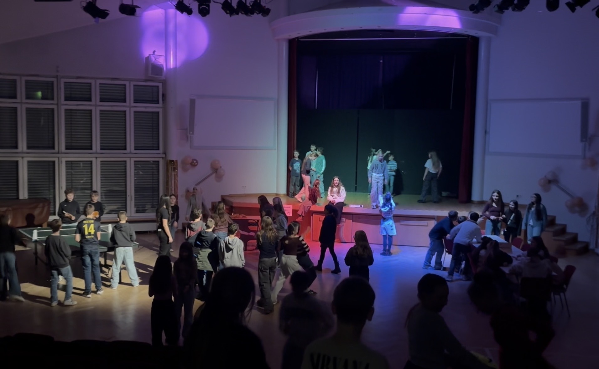 Am Freitag, den 16.1.26 fand hier in der Aula der Schule die Unterstufenfeier für die fünfte und sechste Stufe statt. Es wurde viel getanzt, gespielt und natürlich gefeiert!